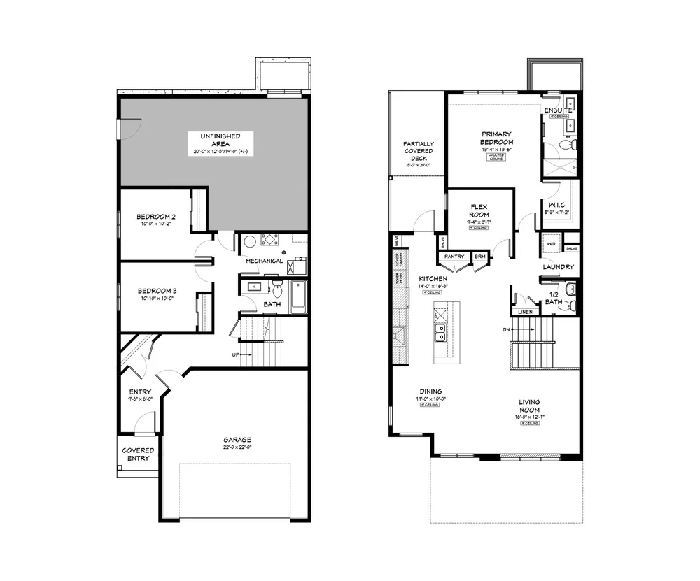 Discover a thoughtfully designed walk-up duplex with 9 ft ceilings, a double attached garage, an open concept main floor with primary suite, laundry, and flex room, plus a partially covered deck and private backyard.