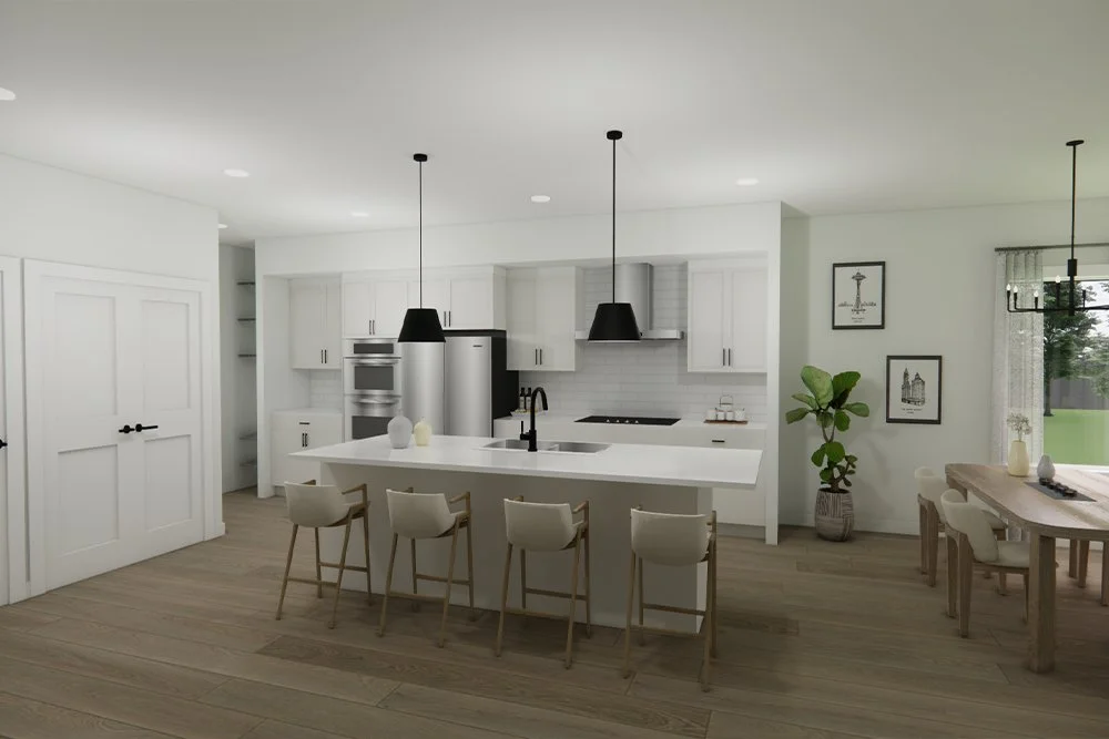 Discover a thoughtfully designed walk-up duplex with 9 ft ceilings and a double attached garage. The main floor features a spacious open concept layout, a primary suite, convenient laundry, and a flexible room for a home office or guests. Step onto the partially covered rear deck and enjoy a private backyard.